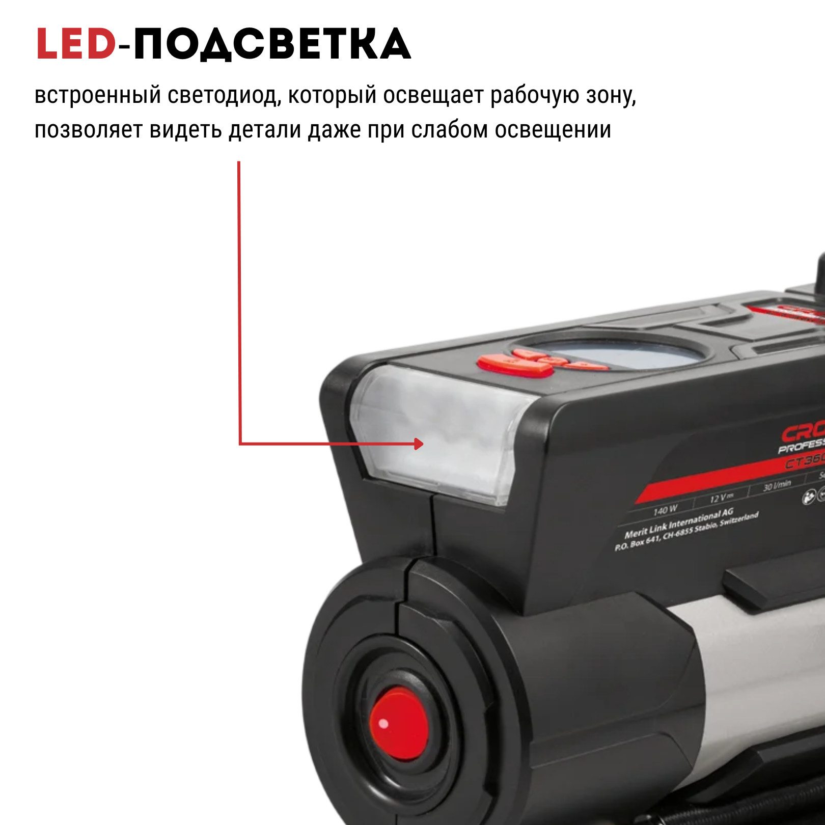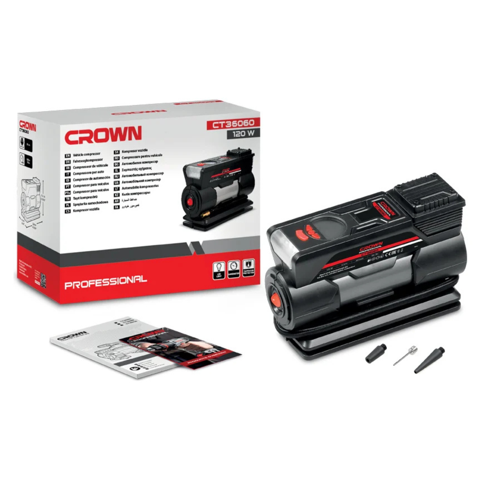 Автомобильный воздушный компрессор CROWN CT36060, 120Вт, 12В, 30л/мин, 6.89бар, 1.75кг