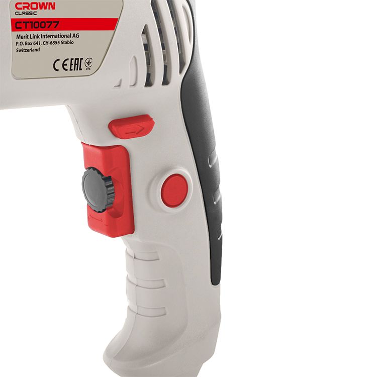 Отличная дрель, мощная и качественная на вид, думаю данный бренд не нуждается в рекламе, предыдущая дрель crown досталась от отца и до сих пор работает.