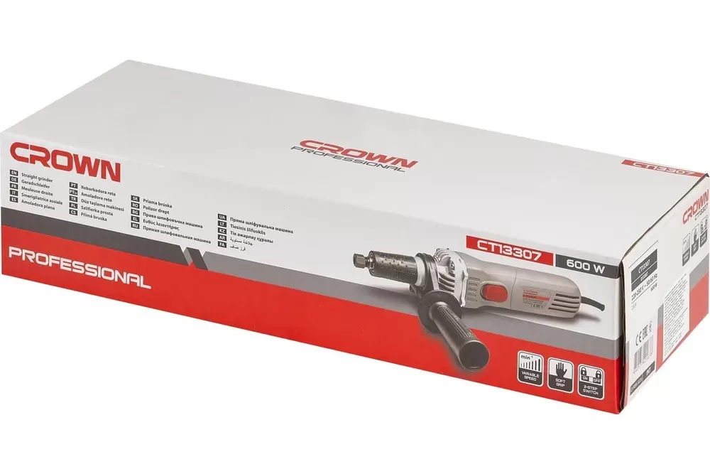 Прямая шлифовальная машина CROWN CT13307 предназначен для удаления заусенцев, острых кромок, шлифования поверхностей и т.д.