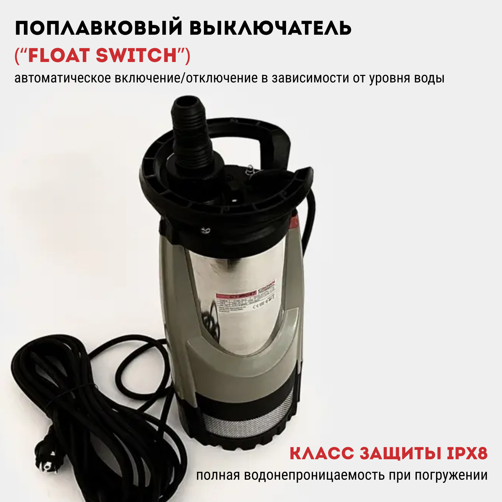 Насос погружной CROWN CT35046F (Акция24), 1200Вт, макс.производительность 6.5 м?/ч, макс.высота подъема 44м, макс.глубина погружения 7м, 9.3кг
