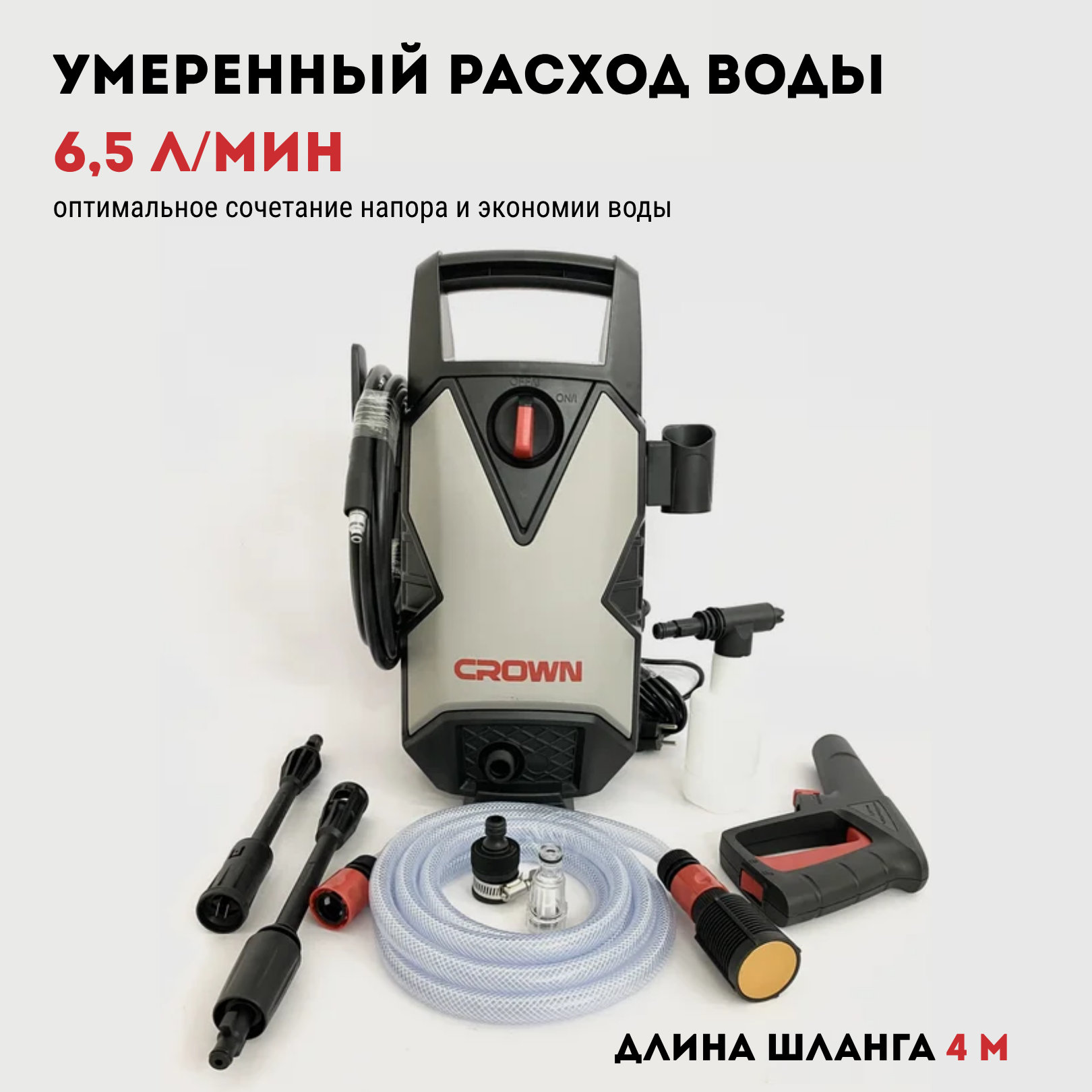 Очиститель высокого давления CROWN CT42019, 1800Вт, 70-100 Бар, 5.5-6.5л/мин, 4.6кг