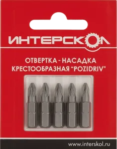 Отвертка-насадка крестообразная "Pozidriv" PZ1, PZ2, PZ3 25мм (6шт) Интерскол 2040402501230