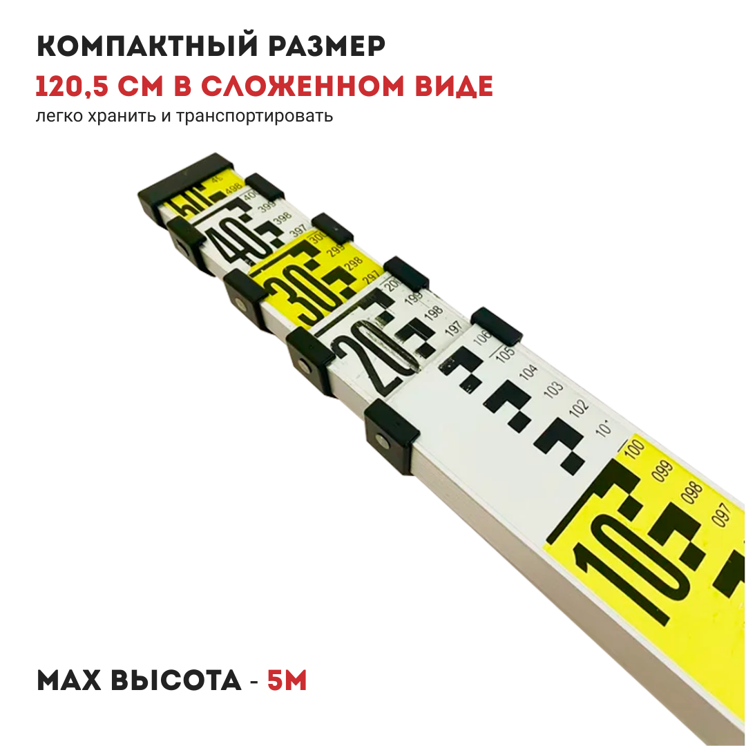 Рейка для оптического нивелира CROWN CAXO-RA70, высота 5м, высота 120см, ширина 4см, 1.16кг