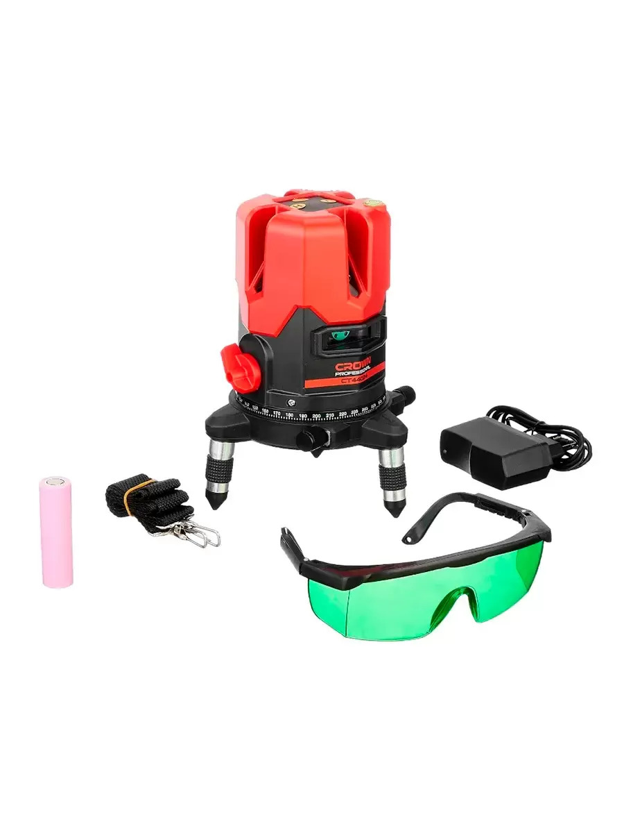 Уровень лазерный CROWN CT44024, 3.7В, лучи 4V 1H 1D, рабочий диапазон 30м, погрешность ±1мм на 7м, вес 1.04кг