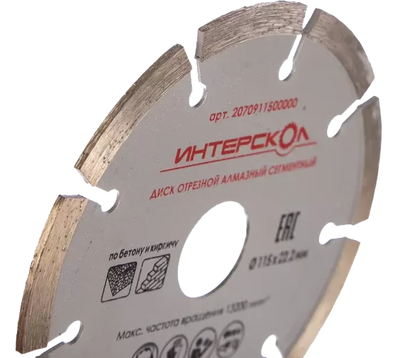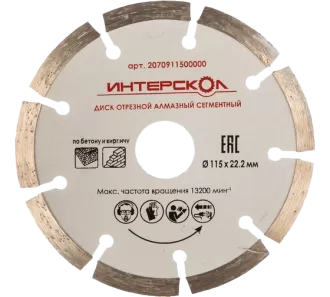 Диск отрезной алмазный по бетону 115*22,2*7 Интерскол 2070911500000