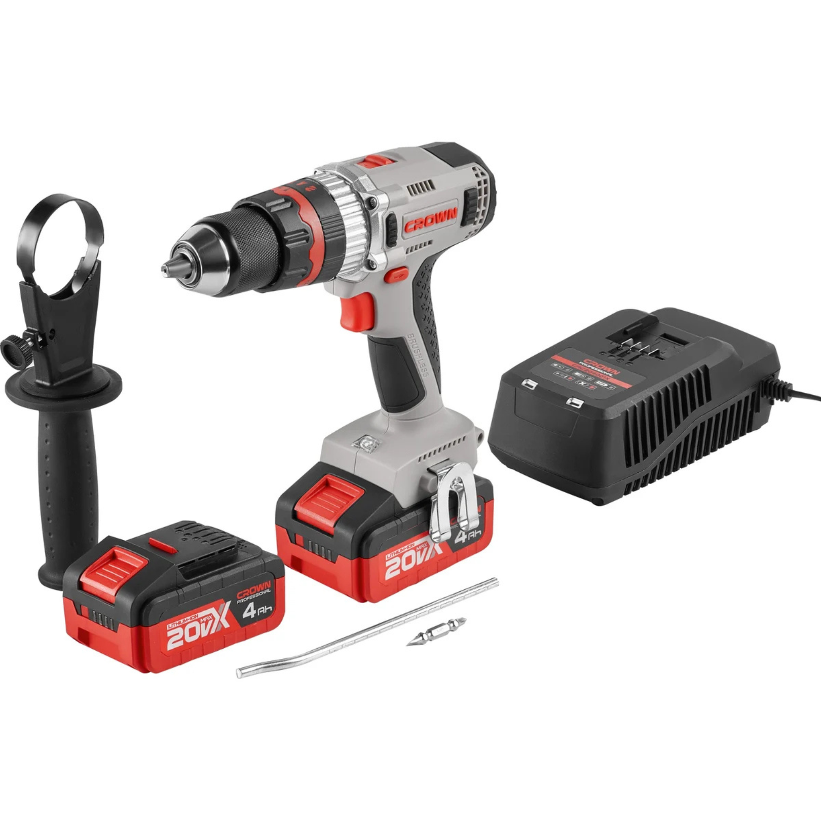 Дрель-шуруповерт аккумуляторный CROWN CT21093HMX-4BMC, 20В,0-500/0-2000 об/мин, патрон 13мм, 4 А, кейс