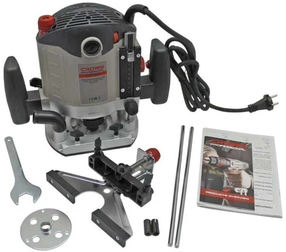 Фрезер CROWN CT11001, 2100Вт, 8000-23000об/мин, диаметр цанги 12мм, вертикальный ход фрезы 60мм, 6.3кг.