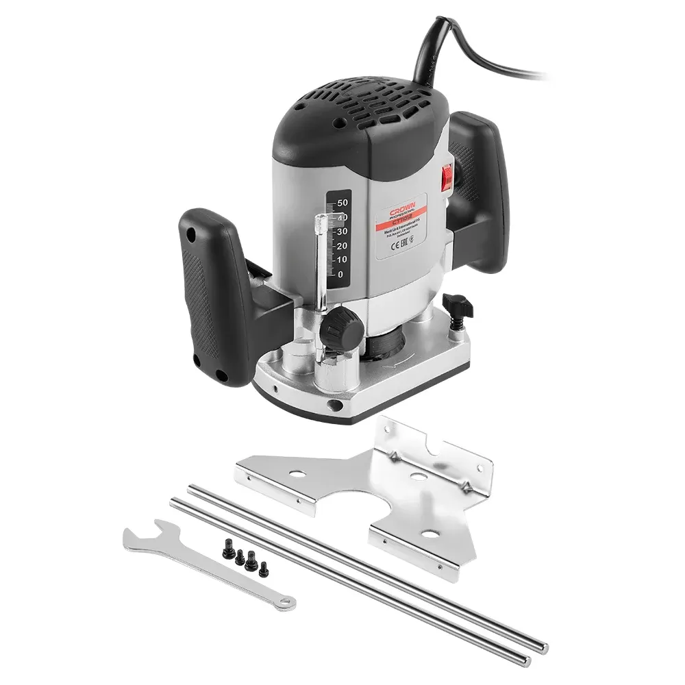 Фрезер CROWN CT11012, 1050Вт, 12000-30000об/мин, диаметр цанги 8мм, вертикальный ход фрезы 50мм, 3,1кг.