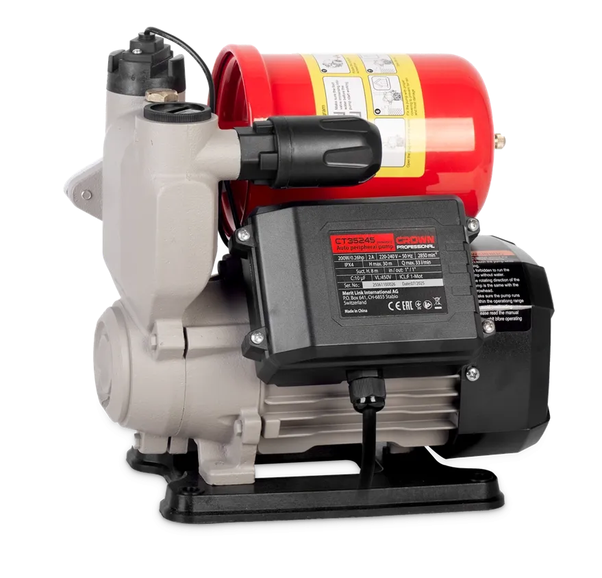 Насос автоматический самовсасывающий CROWN CT35245 (PW125Z), 220-240В, 50Гц, 200Вт/0.26HP, 2м3/ч, 30м, 1x1