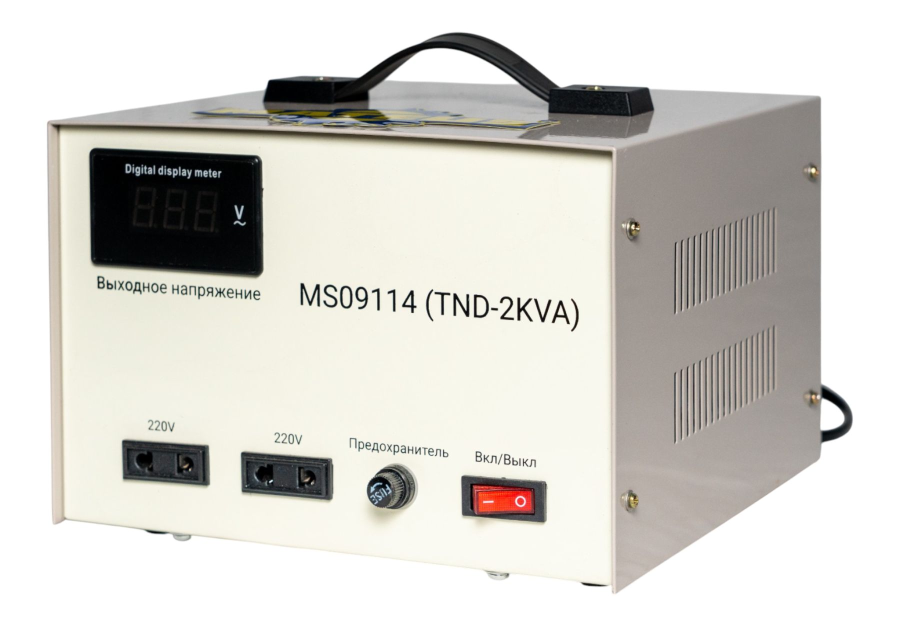 Модель MS09114 имеет номинальную мощность 2000 ВА (≈ 2 кВА, ~2 кВт), что делает его подходящим выбором для защиты среднего набора техники в доме, офисе или мастерской: холодильников, стиральных машин, ПК, телевизоров, котлов, насосов и другого оборудования. Стабилизатор оборудован электромеханическим регулятором (щёточный автотрансформатор), который обеспечивает стабильное и плавное регулирование выходного напряжения без резких скачков.