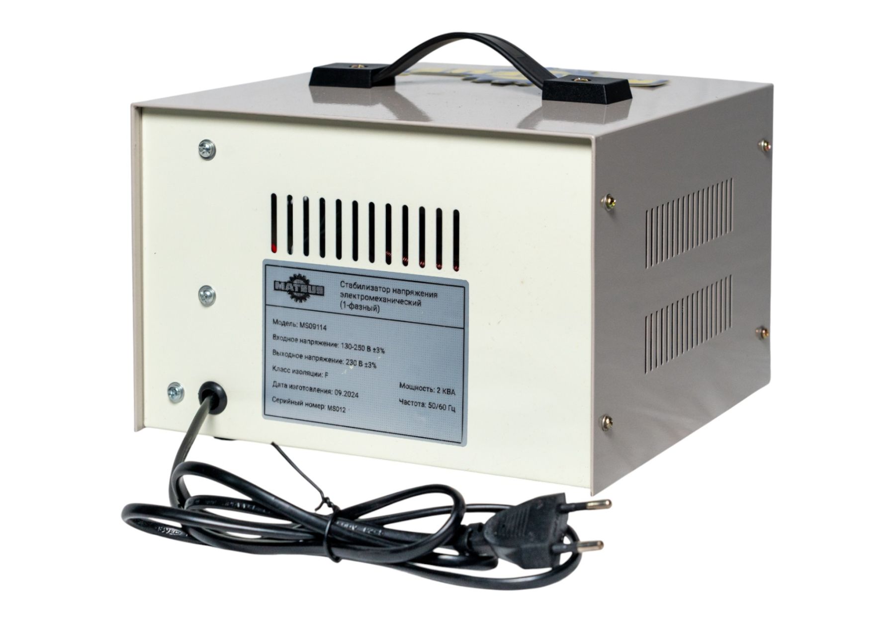 Стабилизатор напряжения Mateus MS09114, aвтоматический, сервоприводного типа, однофазный, 2000VA, вход 130V-250V, выход 220V